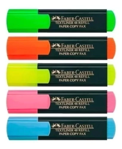 Mejora tu experiencia de estudio y trabajo con el Combo resaltadores TEXTLINER 48 de Faber Castell. Este set incluye 5 resaltadores en colores vibrantes: Amarillo, Naranja, Fucsia, Verde y Celeste. ¡Dale vida a tus ideas con este combo imprescindible!