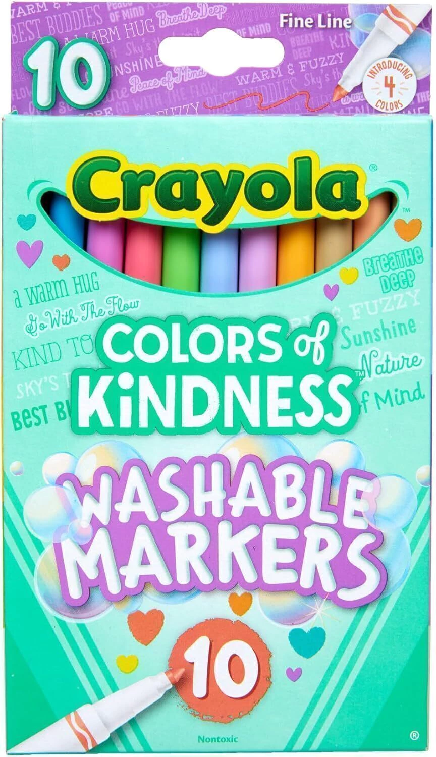 Busca marcadores lavables Crayola Colors of Kindness y haz una obra maestra vibrante. El estilo fino es ideal para piezas detalladas, y los nombres de los colores están diseñados para promover una buena vibración.